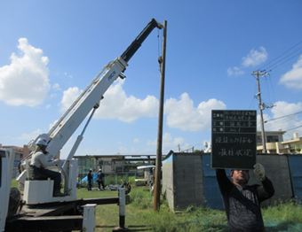 防球ネット支柱、各種支柱等の建込み作業を行います。(掘削φ350~600 深さ4,500まで対応)